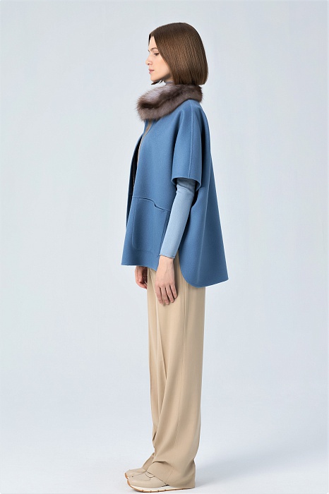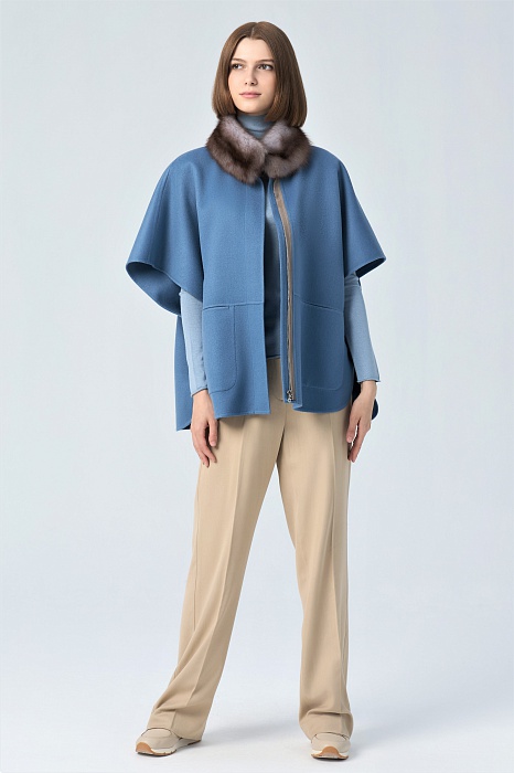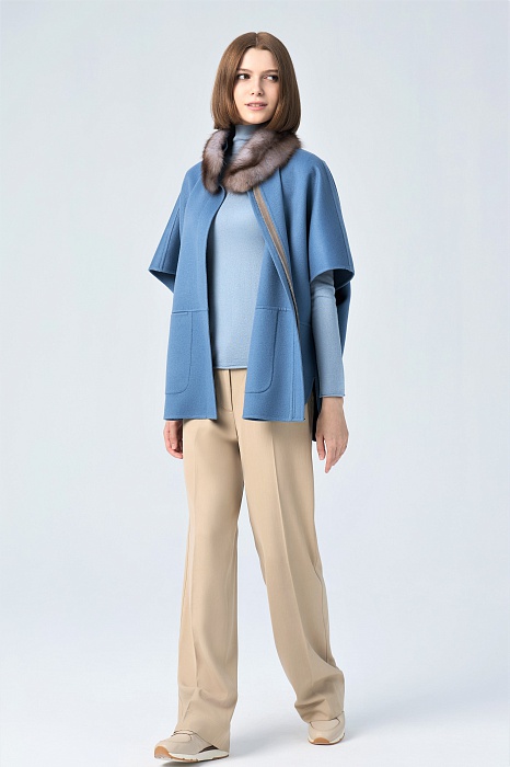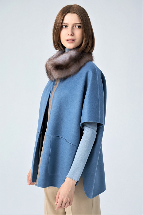 Артикул: 100% Кашемир LORO PIANA double-faceМех: Куница горская "Ирис"Длина: 75 см.